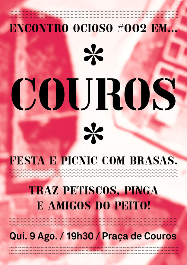 Esta quinta-feira 9 de agosto aparece, ao final da tarde, na nova Praça de Couros, em frente à pousada da juventude! O segundo encontro ocioso convida toda a comunidade de autores e leitores do Ócio a conhecer-se e a dar duas de treta, com comes e bebes à mistura. Após um primeiro encontro na Tasca Expresso, desta vez desafiamos todos a trazerem petiscos e pinga para partilhar, com a possibilidade de trazerem febras ou outra carne para assar. As brasas são por nossa conta!