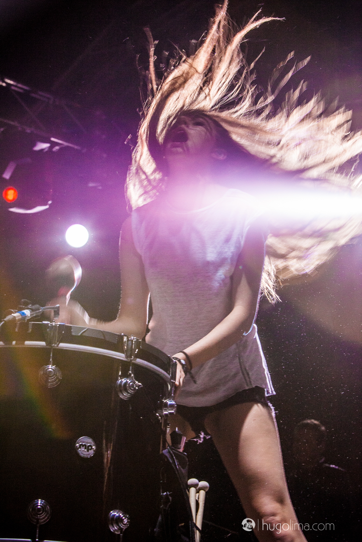 Chegamos ao belíssimo cenário do festival ainda na dúvida se este segundo dia será efectivamente um dia de primavera ou de inverno. Choveu durante a manhã e a tarde mas a impressão agora é que a primavera vence. Afinal parece morar na nuca e nos cabelos de muitos, mercê das muitas centenas de coroas de flores que se vão cruzando connosco. Já no Palco NOS as Warpaint vão pintando o ambiente com uma nostálgica versão de Ashes to ashes de David Bowie. E a nostalgia continua com a actuação dos regressados Slowdive, um dos estandartes da editora Creation nos idos anos noventa. É um concerto encantador e delicado, ideal para ser fruído sentado na relva. E num passo inusitado, trocamos a voz etérea de Rachel Goswell pela voz enraivecida de Black Francis dos Pixies, que trazem ao Porto um set urgente e sem espaço para conversas ou interlúdios. Quase em modo piloto automático temas como Debaser, Here comes your man, Monkey gone to heaven, Gouge Away ou Where is my mind? sucedem-se em ritmo vertiginoso. É um concerto de cariz quase antológico porque as canções do novo Indie Cindy passam despercebidas. Face à ausência de interacção com o público por parte do líder, é Paz Lenchantin, a recente contração para o lugar de baixista, quem distribui sorrisos simpáticos. Também Joey Santiago causa algum alarido quando pega em alguns dos ramos de flores e os faz interagir com a guitarra. Rock n’ roll! E do rock até à electrónica a distância foi de apenas uns passos. Da Dinamarca chegou até nós Trentmoller, com um set dinâmico que apanhou de surpresa os mais desprevenidos. Muito aplaudidas as coreografias robotizadas dos dois elementos femininos da banda em palco. E dança, muita dança. A dança prossegue mais à frente, no Palco Pitchfork, com a estreia dos DARKSIDE. Fazendo jus ao nome, Nicolas Jaar e o multi-instrumentista Dave Harrington apresentam-se num palco quase sem luzes. Já a sonoridade do duo mais do que sombria, é dada à languidez nocturna.